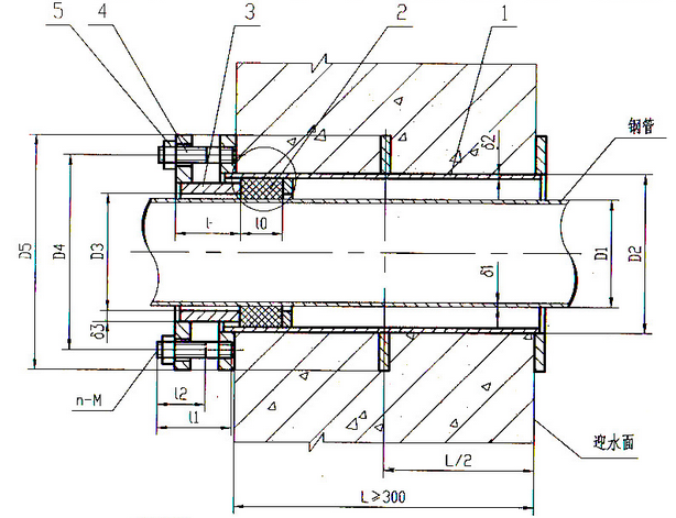 柔性密閉套管是為了解決有些地下工程需要管路穿墻而過(guò),而通過(guò)處又有嚴(yán)密防水要求;還有些構(gòu)筑物也需要管路穿墻而過(guò),同時(shí)又限制管路不能因溫度變化或外力產(chǎn)生伸縮和位移,更不允許管路在外在因素作用下產(chǎn)生振動(dòng)而設(shè)計(jì)制作的。它的外殼一次性澆注在墻壁上,管子從套管中間通過(guò),管子外徑與套管中間用填料密封,起到了防水和減振作用。